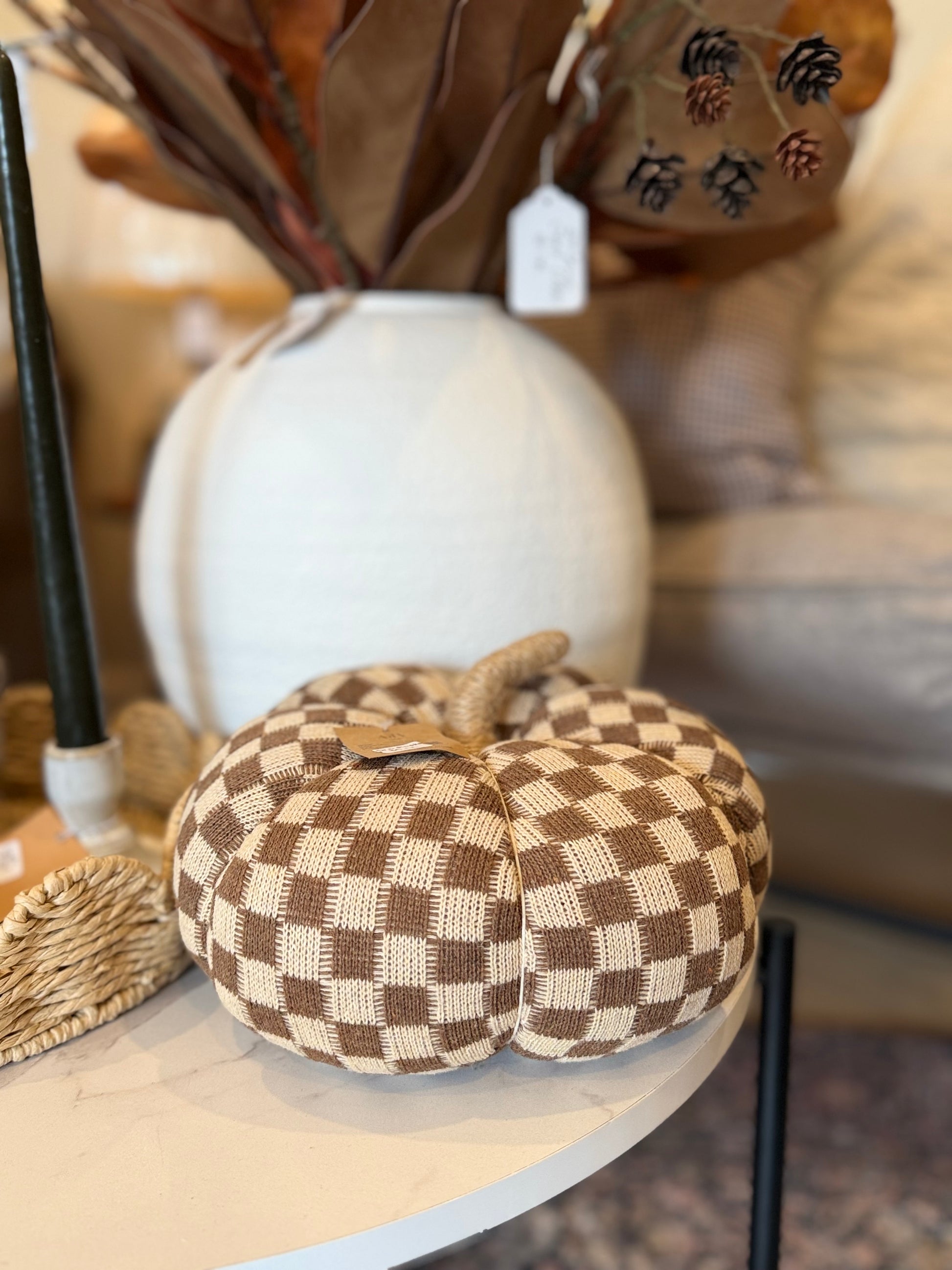 DECO PUMPKIN CHECK POLYESTER BEIGE/BROWN 9X4.5